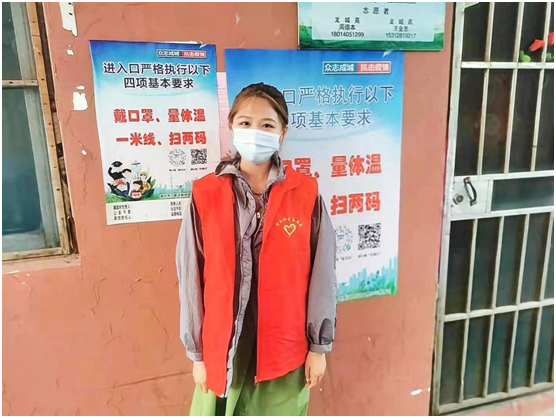 陈榕秦同学,一直以来都将奉献精神作为她坚定的理想信念,这种信念推动她在抗疫活动中奉献自己的一份力量。7月28日陈榕秦加入江苏省扬州市江都区引江社区新型冠状病毒防控队伍之后因工作安排,在龙城苑小区密切接触者进行排查,对每个楼道进行排查并上门询问登记,对居民进行防疫宣传并且体温测量。她表示会向每一户家庭送去关心和温暖。