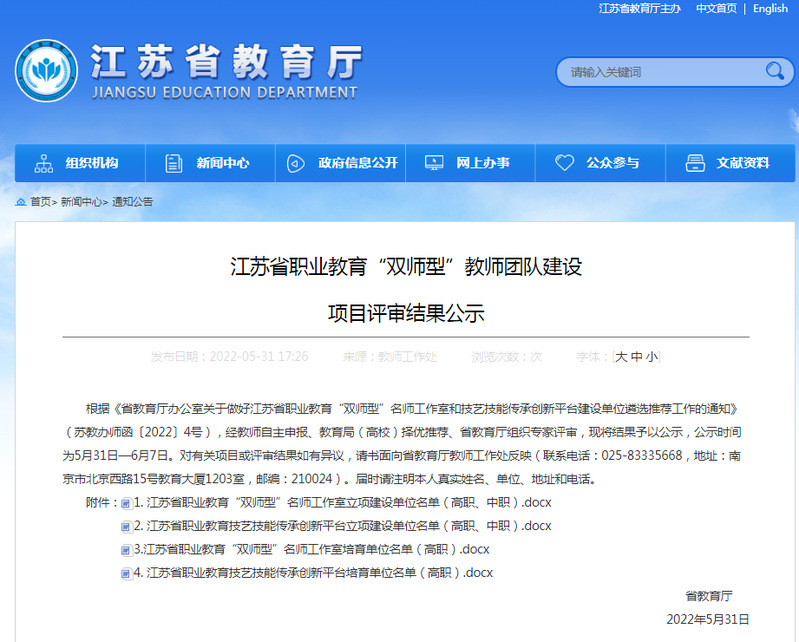 学院获批江苏省职业教育资源环境“双师型”名师工作室