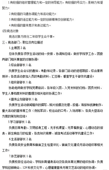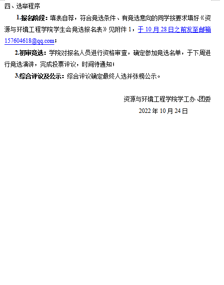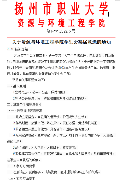 关于资源与环境工程学院学生会换届竞选的通知