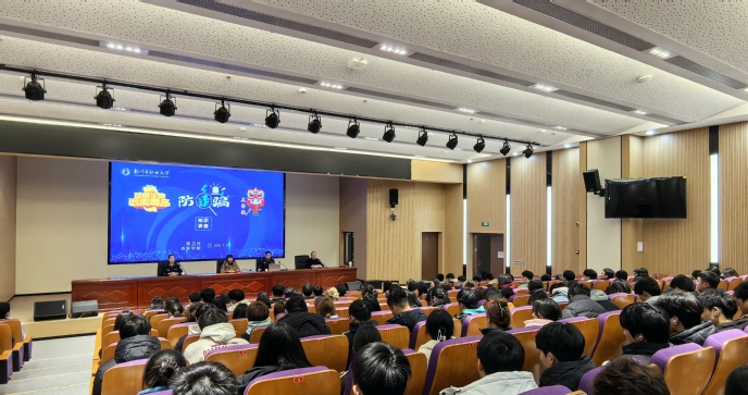 3月3日,资环学院、保卫处联合在高邮湖校区图书馆泮塘报告厅举办校园安全知识讲座。高邮市公安局刑警大队禁毒大队教导员王学栋警官、高邮市公安局蝶园派出所陈慧如警官分别从禁毒、防诈、反**三个方面进行了讲解。资环学院2024级全体同学聆听了讲座,学院总支书记王海玫参加了活动。