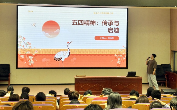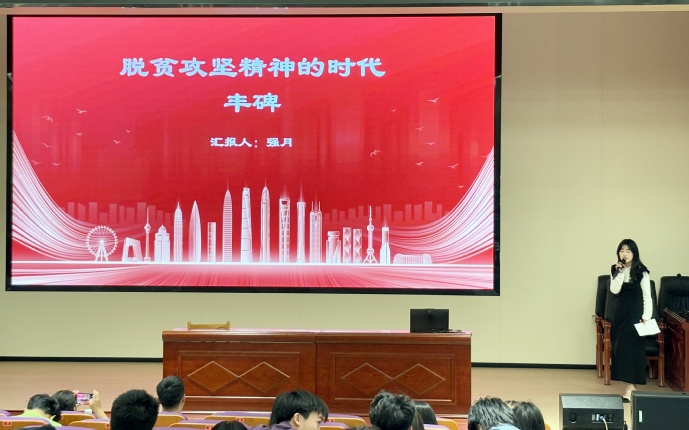 同学们采用PPT、视频、吉他弹唱、朗诵等多种形式,打造沉浸式精神传承“新范式”。他们有的动情讲述红色故事,用歌声传递红色精神的永恒力量;有的解码北斗系统背后的科技密码与奋斗传奇,以铿锵朗诵展现航天人“追星逐月”的执着;有的回溯改革开放壮阔历程,用吉他弹唱诉说创新乐章;有的重温了觉醒年代,热血朗诵让“五四精神”重焕光芒;有的用深情朗诵展现脱贫攻坚精神,激励同学们以脚步丈量土地,以双手改写命运。