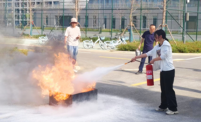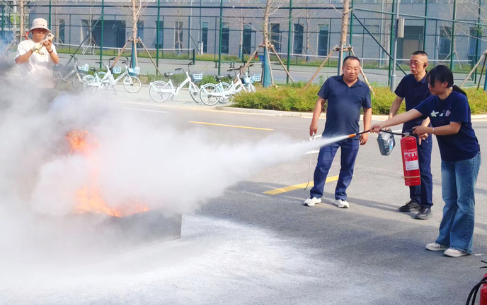 活动伊始,校保卫处副处长王正军结合高校火灾案例,剖析了实验室、宿舍等重点区域的火灾隐患,详细讲解了灭火器使用方法及火场逃生技巧。随后,全体人员在19号楼西侧空地开展灭火实操演练。保卫处专业人员现场演示了干粉灭火器的“提、拔、握、压”四步操作法,师生们分组进行油盆灭火练习。
